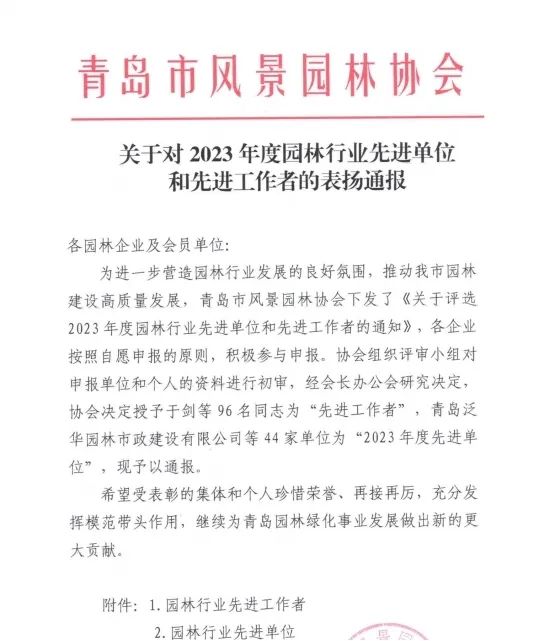 喜報!集團獲得青島市風景園林協(xié)會多項表彰