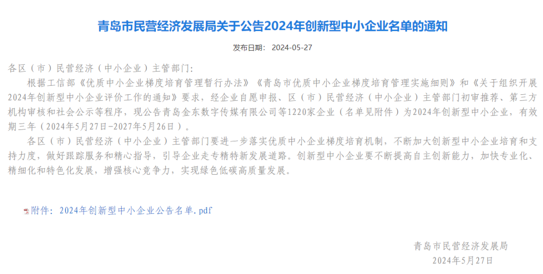 城市物業(yè)檢測(cè)中心入選青島市2024年創(chuàng)新型中小企業(yè)名單