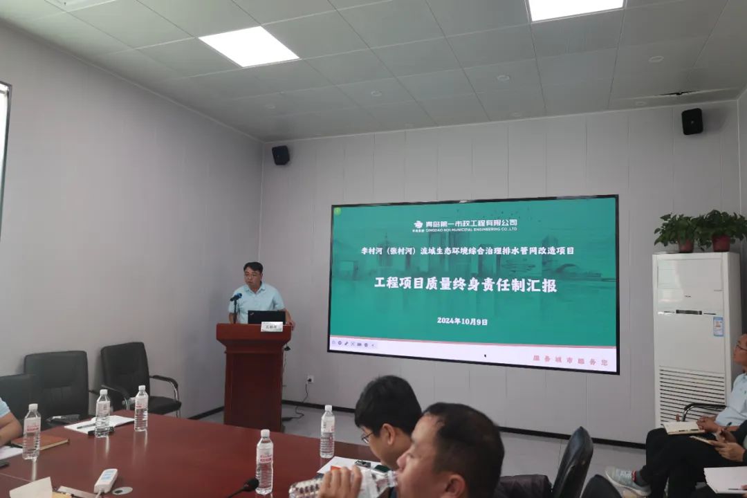集團安質環(huán)部在項目部會議室匯報了集團質量終身責任制開展情況及進行質量管理成果交流活動的意義和目標。第一市政兩河流域項目部從管理目標和項目組織、質量管控和終身責任制,以及黨建、廉建等方面出發(fā),匯報了開展質量終身責任制的一系列措施和成效,以建立完善的質量管理體系,執(zhí)行落實質量終身責任制為依托,全面提升項目質量管理能力和履約能力。