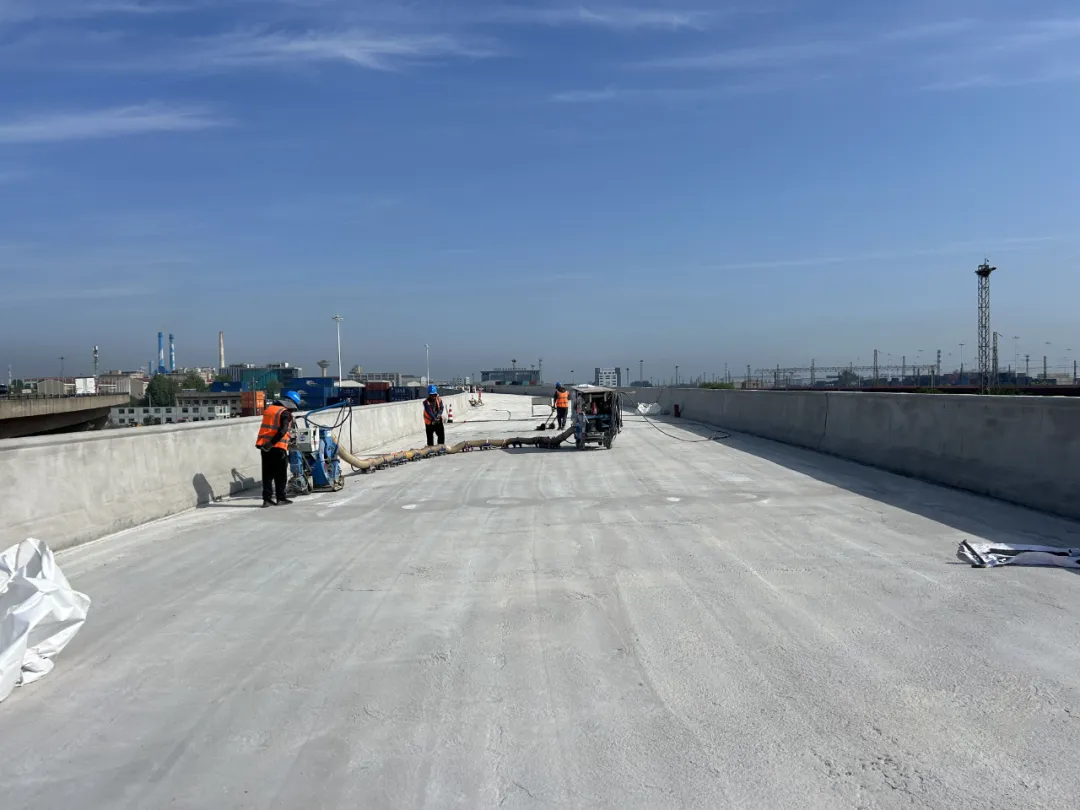 是第二條海底隧道配套工程之一,作為西海岸新區(qū)重大民生工程,建成后將有效提升疏港交通集散功能及交通轉(zhuǎn)換效率,為西海岸新區(qū)的經(jīng)濟發(fā)展提供重要保證。“五一”假期期間,項目建設(shè)者奮戰(zhàn)一線,抓生產(chǎn)進(jìn)度、保質(zhì)量安全,高標(biāo)準(zhǔn)完成了B5、B6聯(lián)箱梁鋪裝層拋丸施工。同時,項目部安排專人24小時值班值守,全力保證假期間項目施工安全。