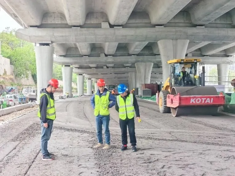 任務(wù)重、難點多,為盡快恢復(fù)路段通行能力,搶抓市政重點工程進(jìn)度,項目在“五一”假期期間全面鋪開,現(xiàn)場機械設(shè)備10余臺,挖掘機、壓路機等大型機械轟鳴作響,不斷穿梭在工地現(xiàn)場,近60名施工人員身著醒目的安全背心,頭戴安全帽,在烈日下?lián)]汗如雨。路基壓實整平、電力排管安裝、橋梁施工等各項工作緊張而高效地進(jìn)行著,力爭在汛期來臨前具備道路通車條件。